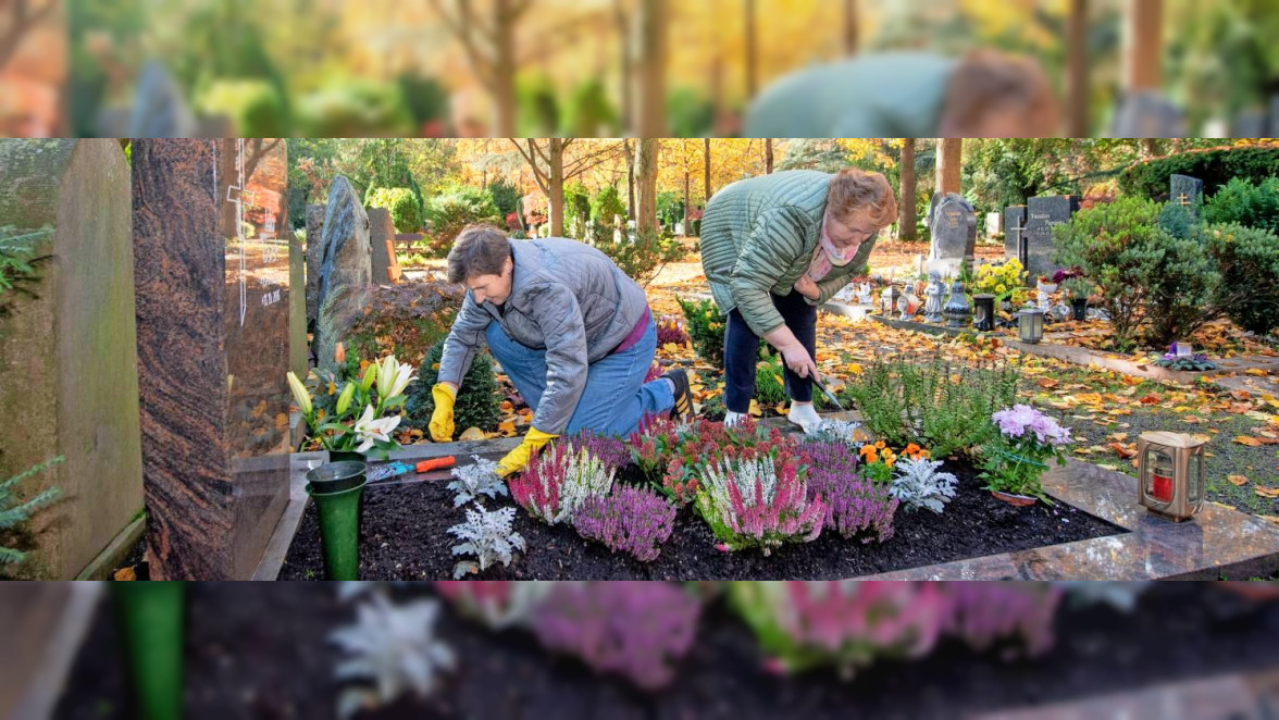 - Purpurglöckchen: Es besitzt ungewöhnliche, dunkelrote Blätter. Damit ist es auch nach der Blüte ein wahrer Blickfang, der sich für die Herbstgestaltung bestens eignet - nicht nur auf dem Grab.